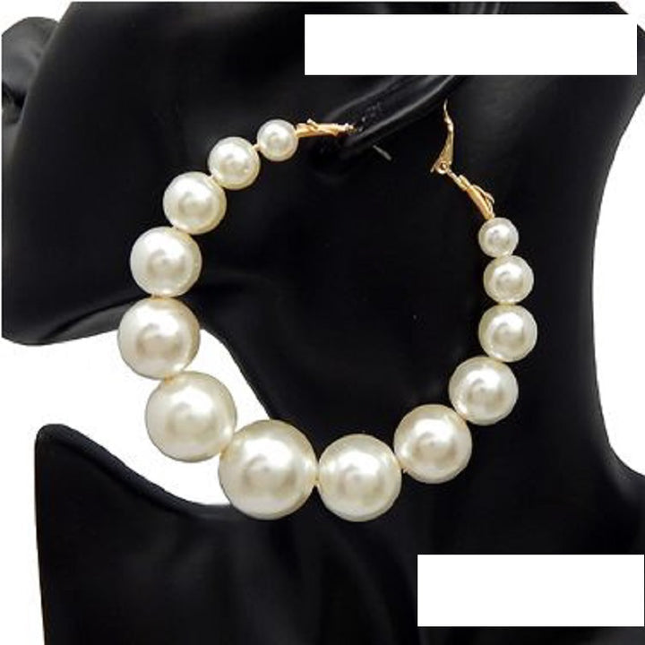 Large Gold Cream Pearl Hoop Earrings