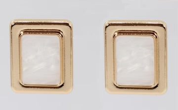 Gold Based White/Pearl Like Square Raised Fashion Earrings