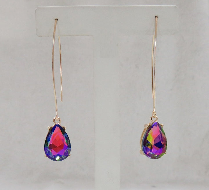 Dangle Gold Earrings Vitrail Oil Spill Color Stones