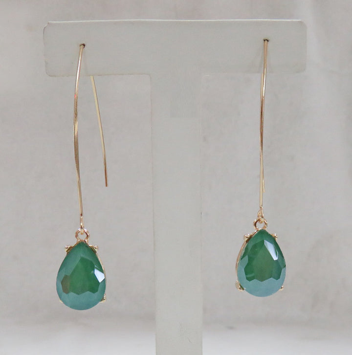 Dangle Gold Earrings Green ‘Jade’ Like Stones